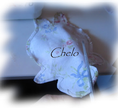 Una vez hayamos rellenado todo el cuerpo procedemos a cerrar la abertura con unas puntaditas como vemos en la foto de arriba....