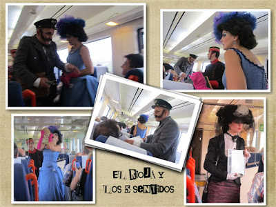 El trayecto ha sido ameno y muy divertido, desde el principio del viaje, y ya en la estación, 4 actores pertenecientes a "Sapo producciones" amenizaban los vagones interactuando con los pasajeros, mi hija Sonia fue una de las víctima, por decirlo de algún modo, del teatro en el vagón, siempre escogen a algún pasajero para meterlo en sus actuaciones, nos hemos reído mucho!!!
