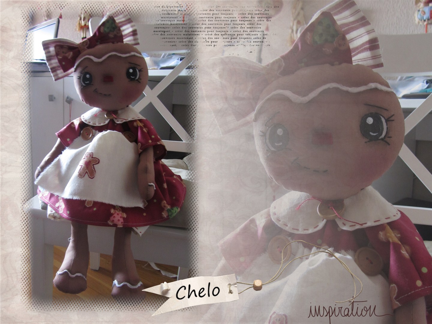 Hola Chelo, es preciosa, las muñecas de trapo me encantan, te quedó genial. Besos