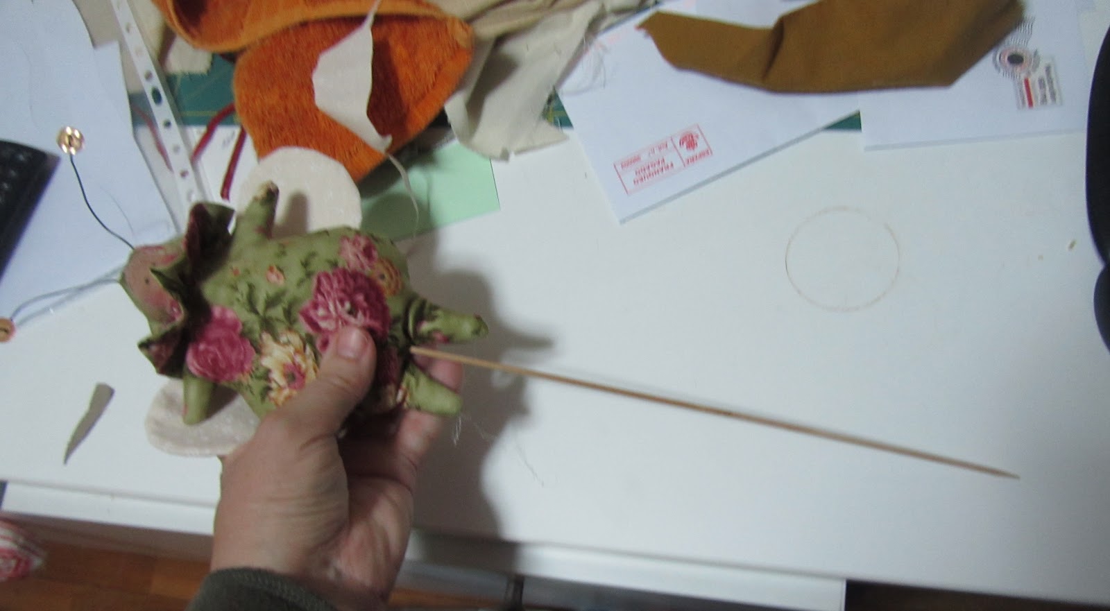 Una vez hayamos rellenado todo el cuerpo procedemos a cerrar la abertura con unas puntaditas como vemos en la foto de arriba....