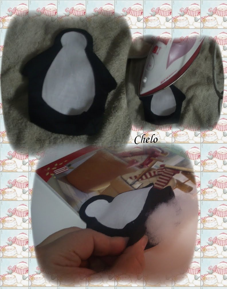 Antes de proceder al relleno pegamos la parte blanca al cuerpo con la plancha centrando bien el dibujo. Rellenamos con acrílico.