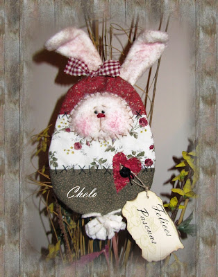 ¡¡FELICES PASCUAS!! .Hola chicas, como habéis llevado las vacaciones de S.Santa?? nosotros llegamos anoche, lo hemos pasado genial y hemos tenido muy buen tiempo y disfrutado mucho de estos dos días de vacaciones familiares. Hoy Lunes de Pascua en Logroño, es festivo, aprovecho para enseñaros este detalle que hice antes de irme para decorar en Pascua, se trata de un conejo metido en un supuesto huevo de Pascua, es muy gracioso ¿verdad? le puse esa etiqueta colgada del corazón y enganchada en su botón. Ya os enseñaré alguna de las fotos de estos dos días, hemos estado toda la familia juntos!!! también Cristina...;-)).